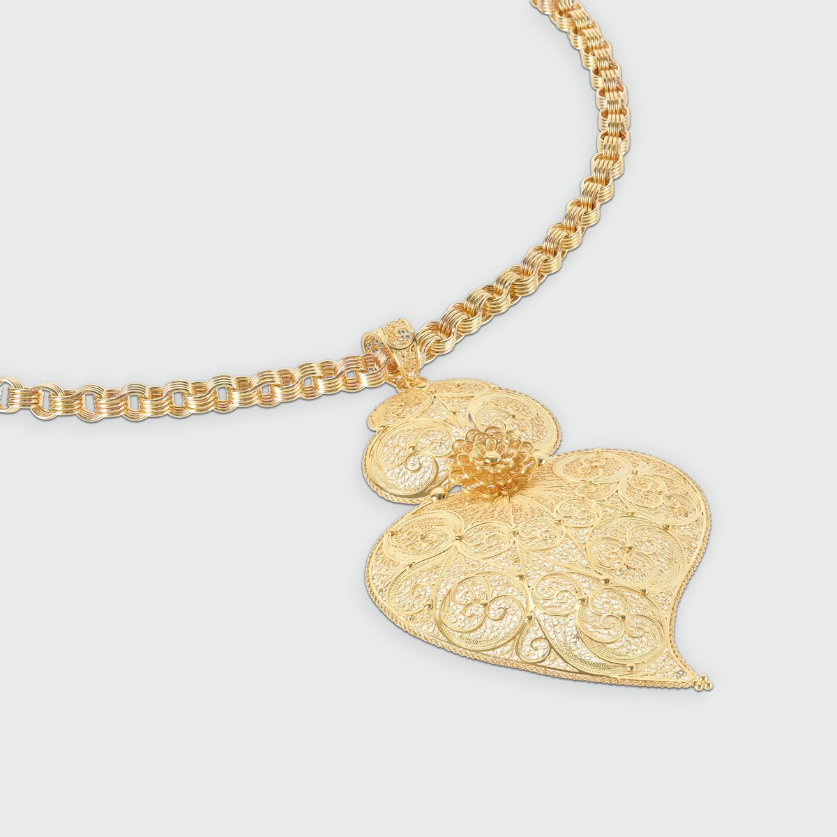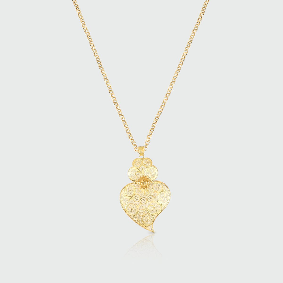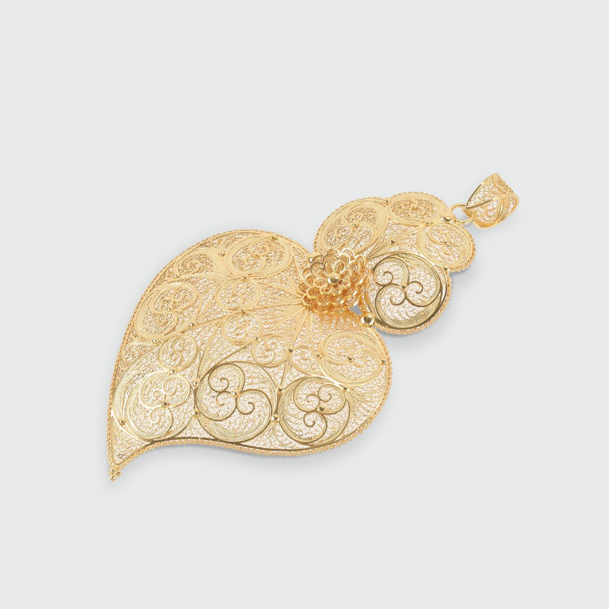 Corazón de filigrana en oro amarillo de 19,2 quilates con un peso aproximado de 11 gramos.