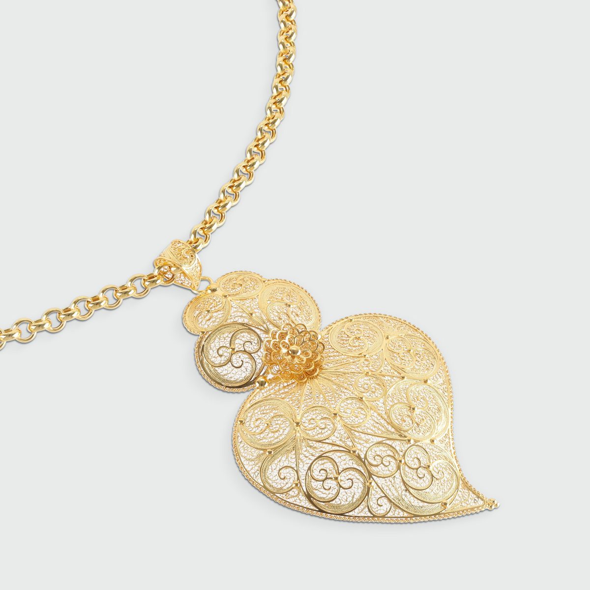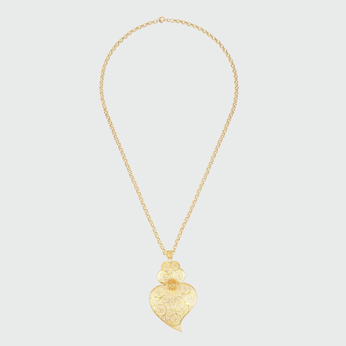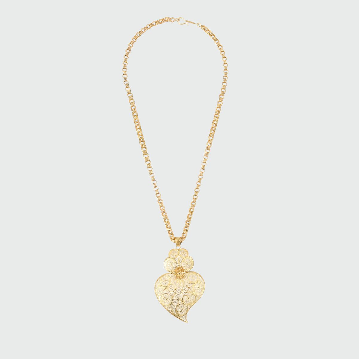 Corazón de filigrana en oro amarillo de 19,2 quilates con un peso aproximado de 11 gramos.