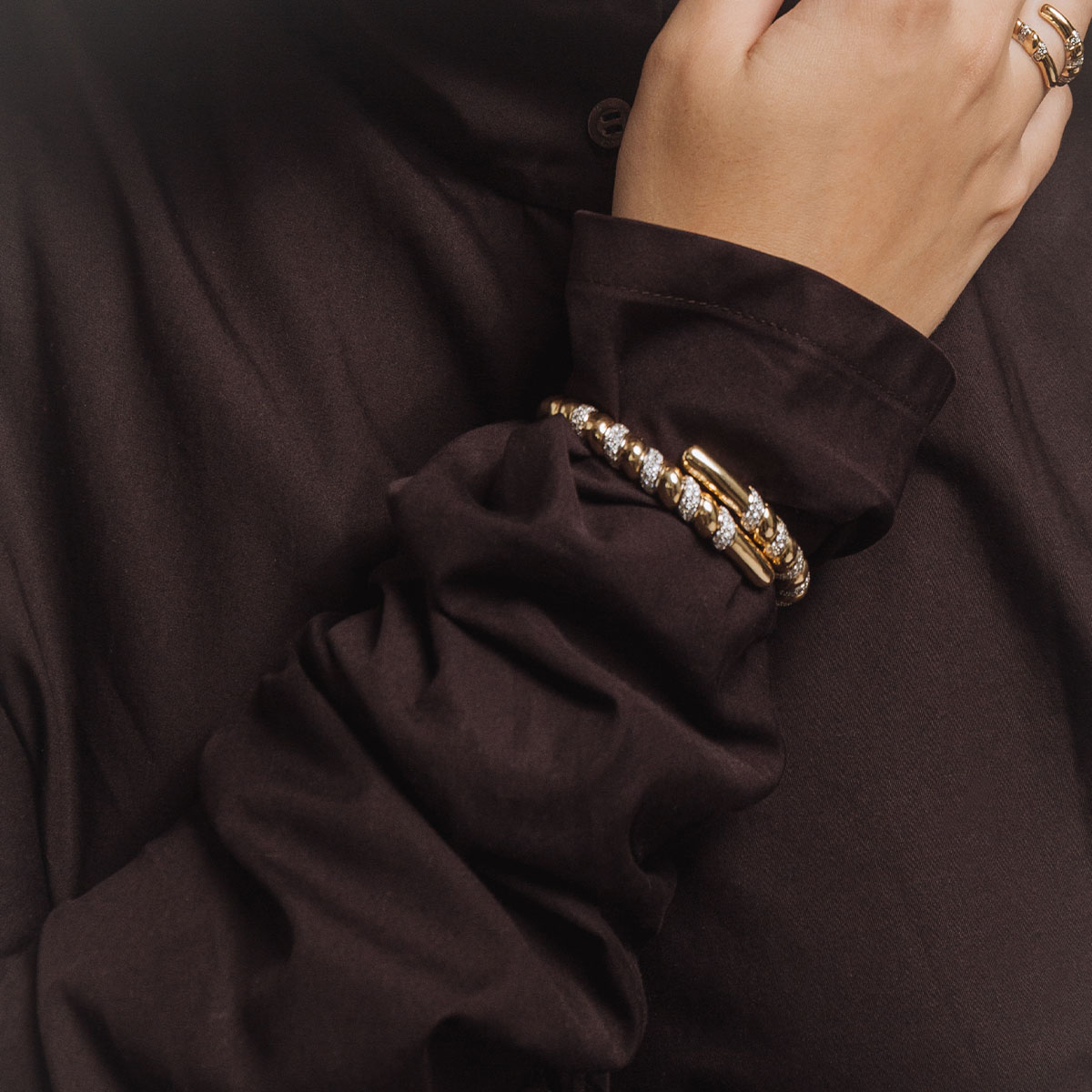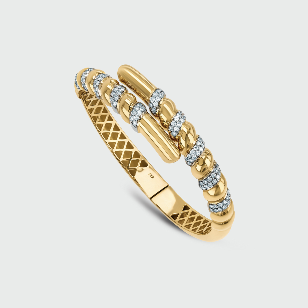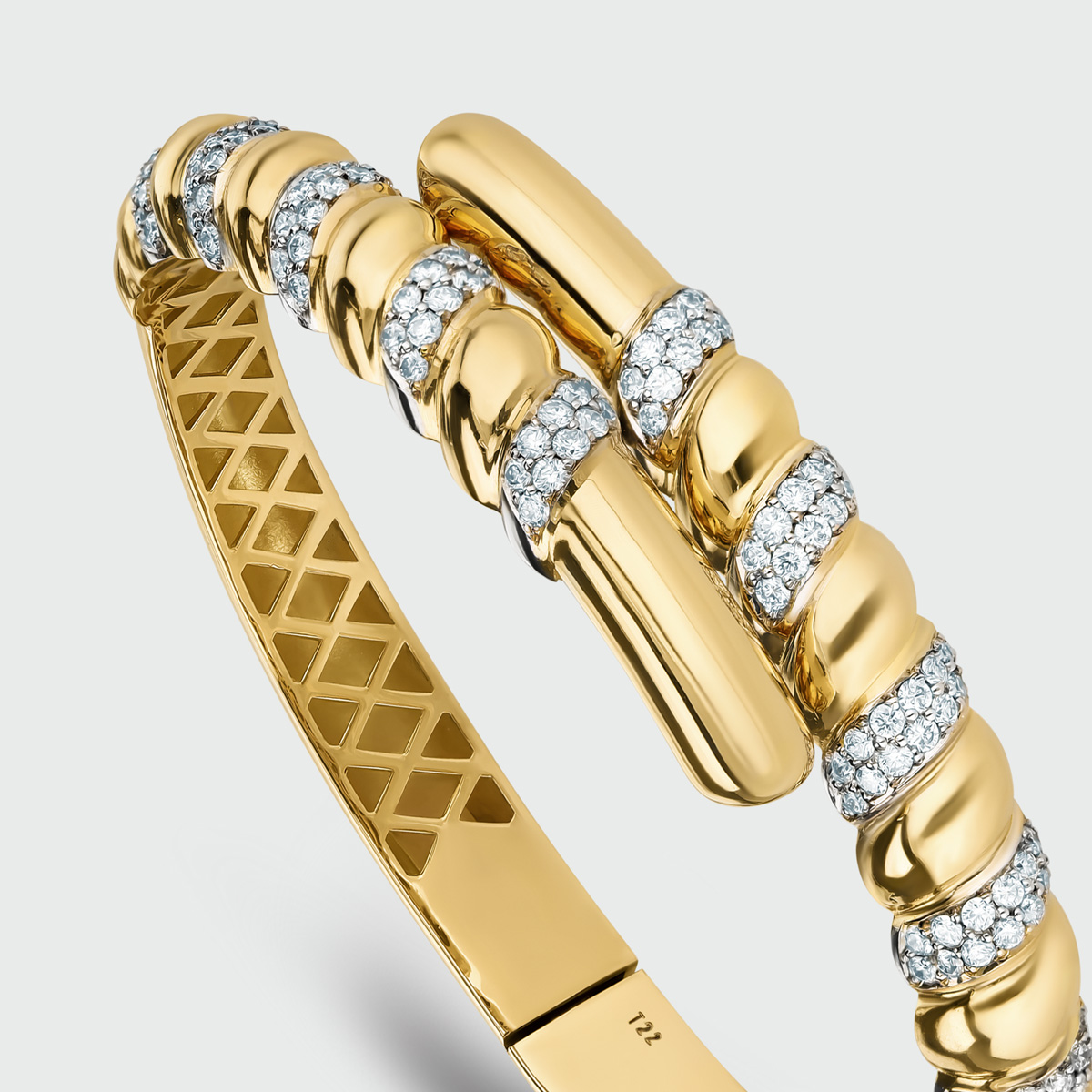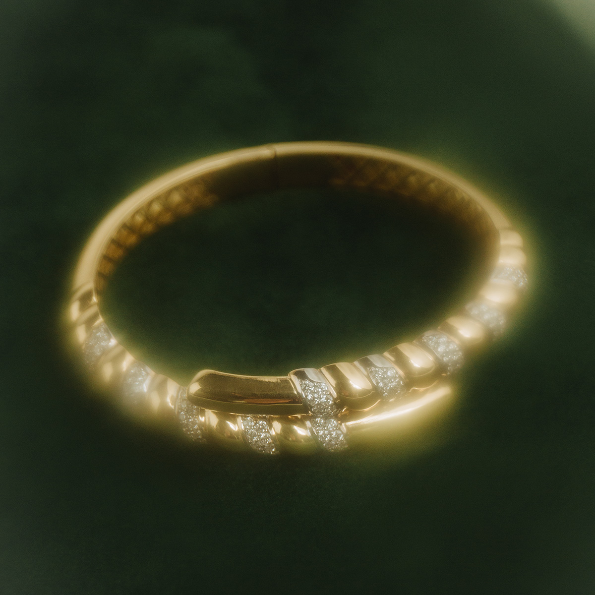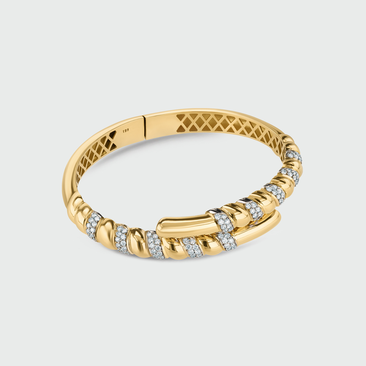 Fabriqué en or de 30,7 g, serti de 122 diamants H/VS totalisant 1,60 ct.