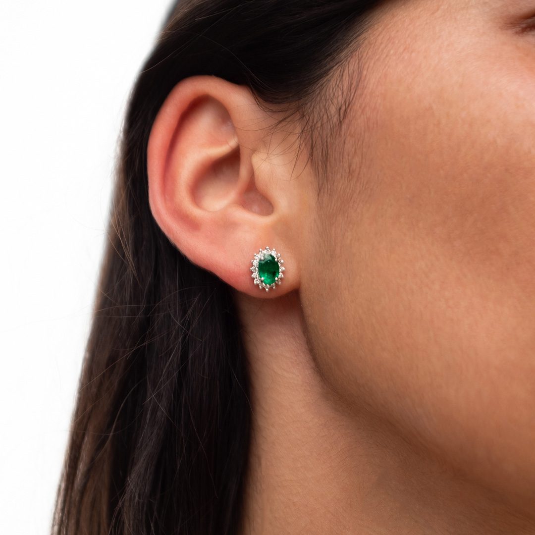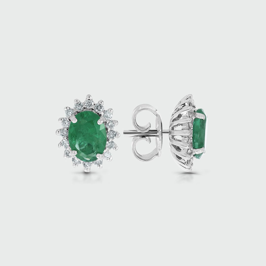 O verde radiante das esmeraldas faz delas as pedras mais exuberantes e misteriosas do mundo da joalharia. Estes Brincos clássicos, em ouro branco de 18 Kt, têm como peça central uma esmeralda, pesando 0,80ct, que é emoldurada por 16 diamantes, cor H, pureza SI, com um peso total de 0,15ct.