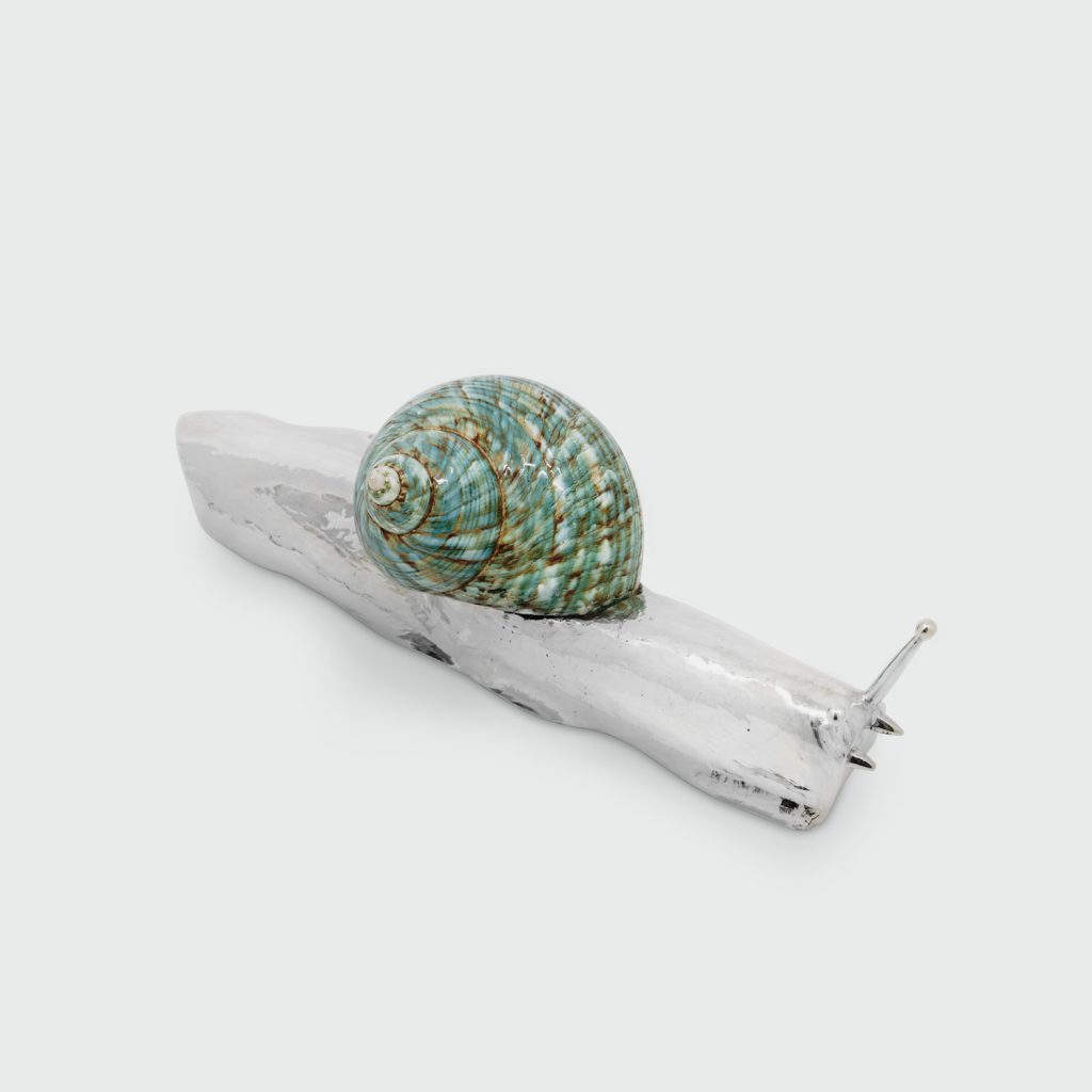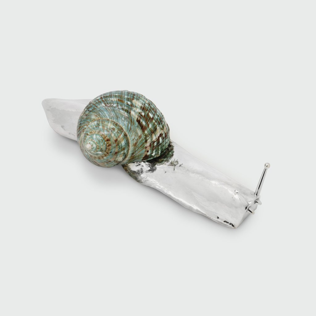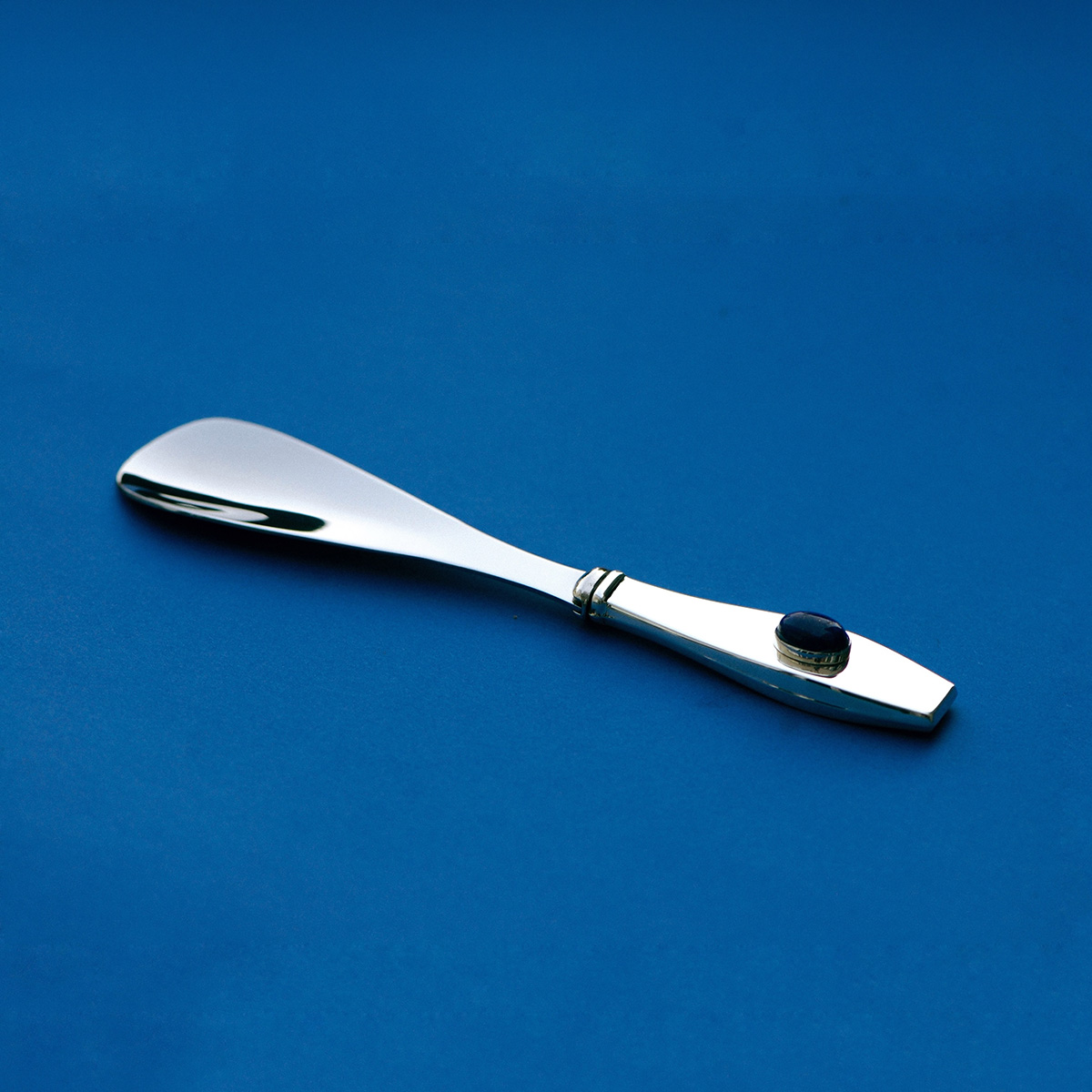 AColeção Lazuli Coleção nos tons azuis profundos do lazuli, integrados em objetos de prata do quotidiano. Cortadores de papel, porta-notas e calçadeiras destacam o contraste entre a pedra luminosa e o metal polido. Lazuli materiais nobres para a vida quotidiana, transformando ferramentas comuns em objetos que combinam funcionalidade e elegância.