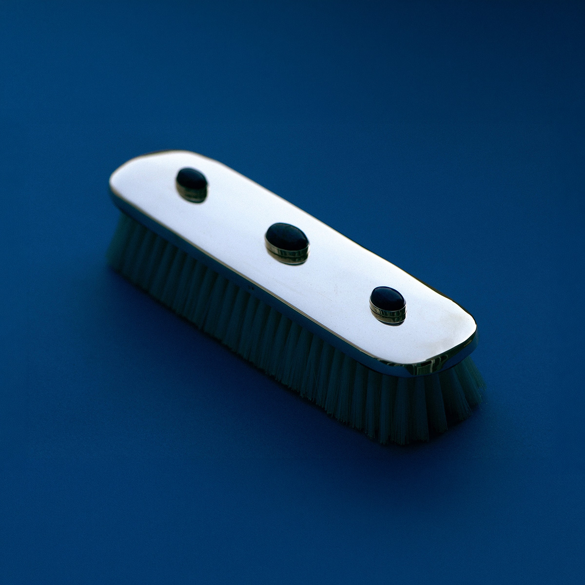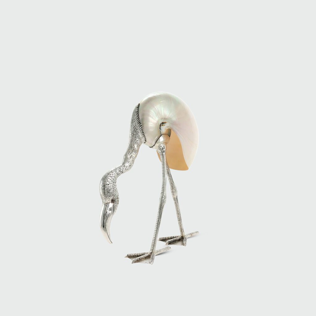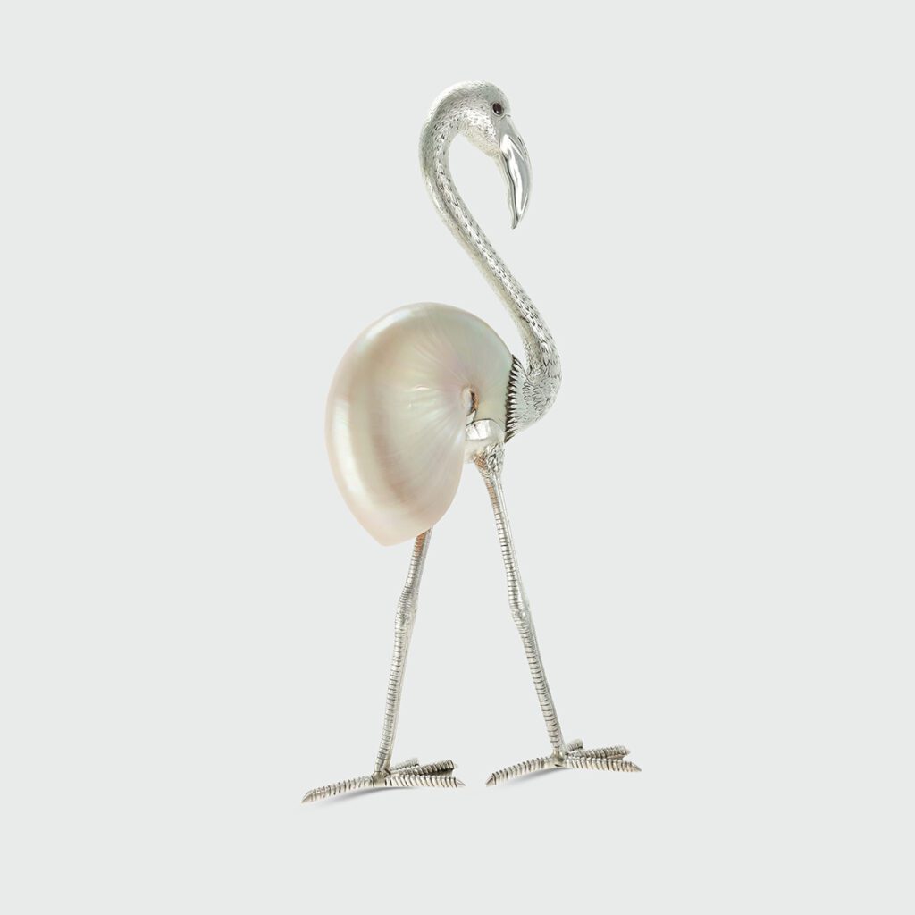 AColeção Lazuli Coleção nos tons azuis profundos do lazuli, integrados em objetos de prata do quotidiano. Cortadores de papel, porta-notas e calçadeiras destacam o contraste entre a pedra luminosa e o metal polido. Lazuli materiais nobres para a vida quotidiana, transformando ferramentas comuns em objetos que combinam funcionalidade e elegância.