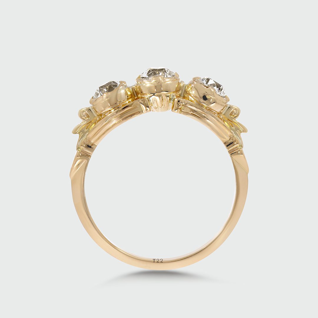 Ring with 19.2Kt yellow gold, weighing approximately 4.4g. and 3 old cut diamonds with a total weight of 0.87ct.