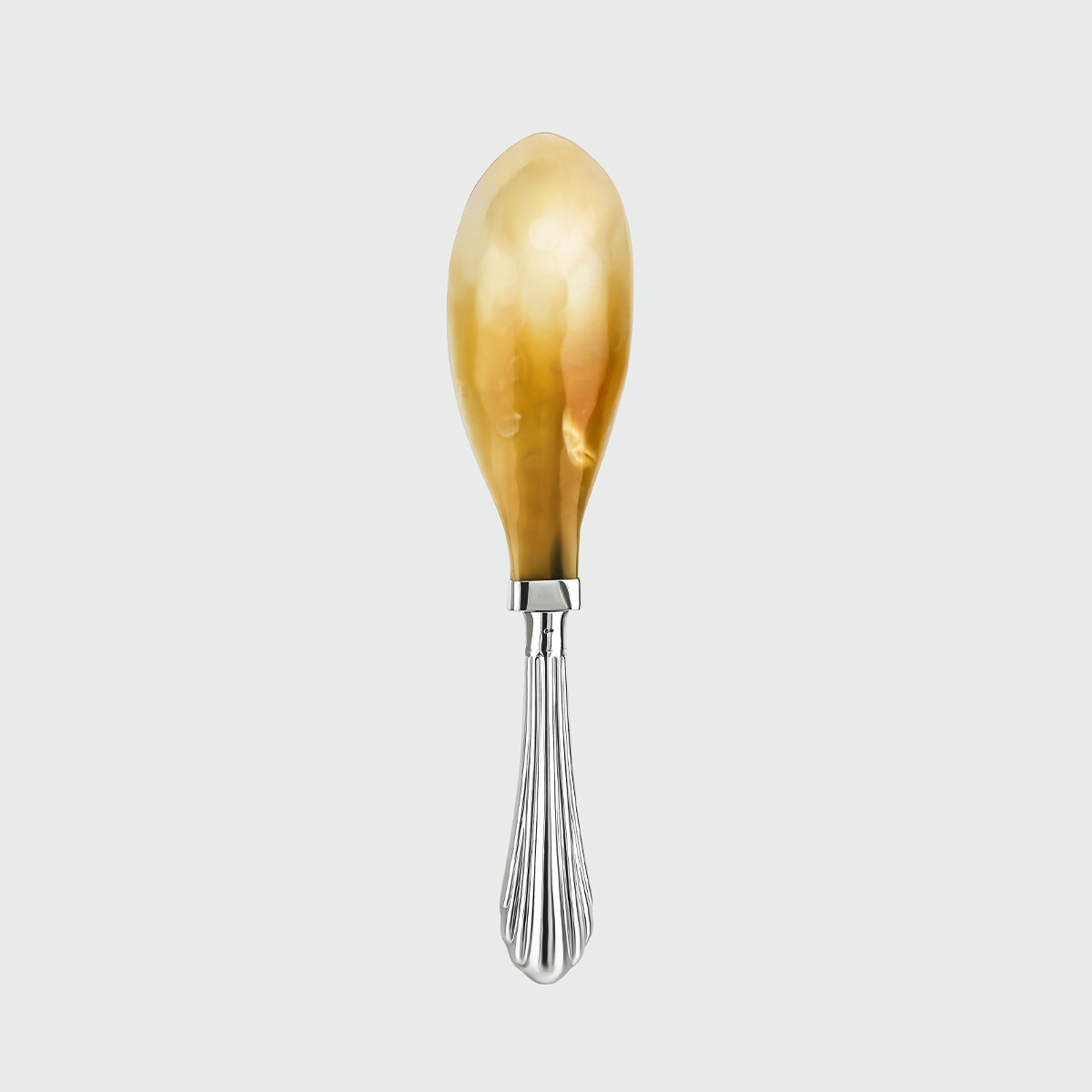 Yellow buffalo horn spoon with silver handle weighing approximately 17,5g
